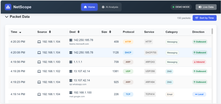 NetScope is an enterprise-grade network traffic analyzer and deep packet inspection (DPI) solution. It provides network administrators and security teams with real-time, comprehensive visibility into all network activity through an intuitive interface, helping organizations secure their infrastructure, optimize performance, and ensure compliance.