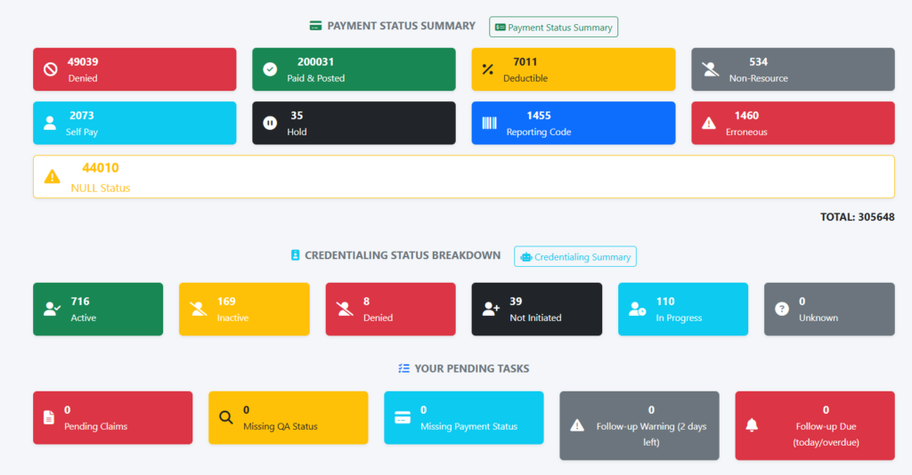 • Status Breakdown: View detailed credentialing states all in one place